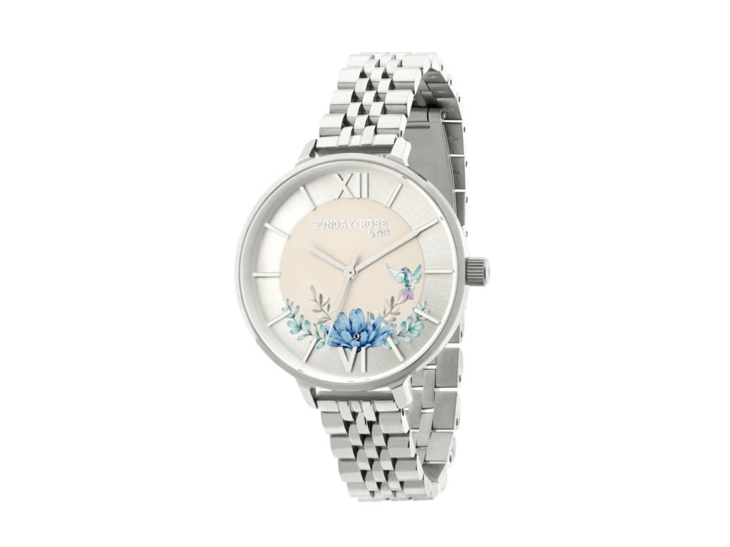 Dámské stříbrné hodinky JVD kytky modré