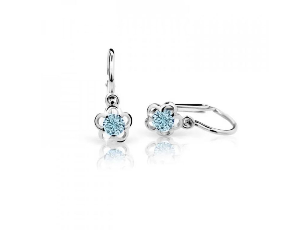 Dětské zlaté náušnice pomněnky bílé zlato světle modré