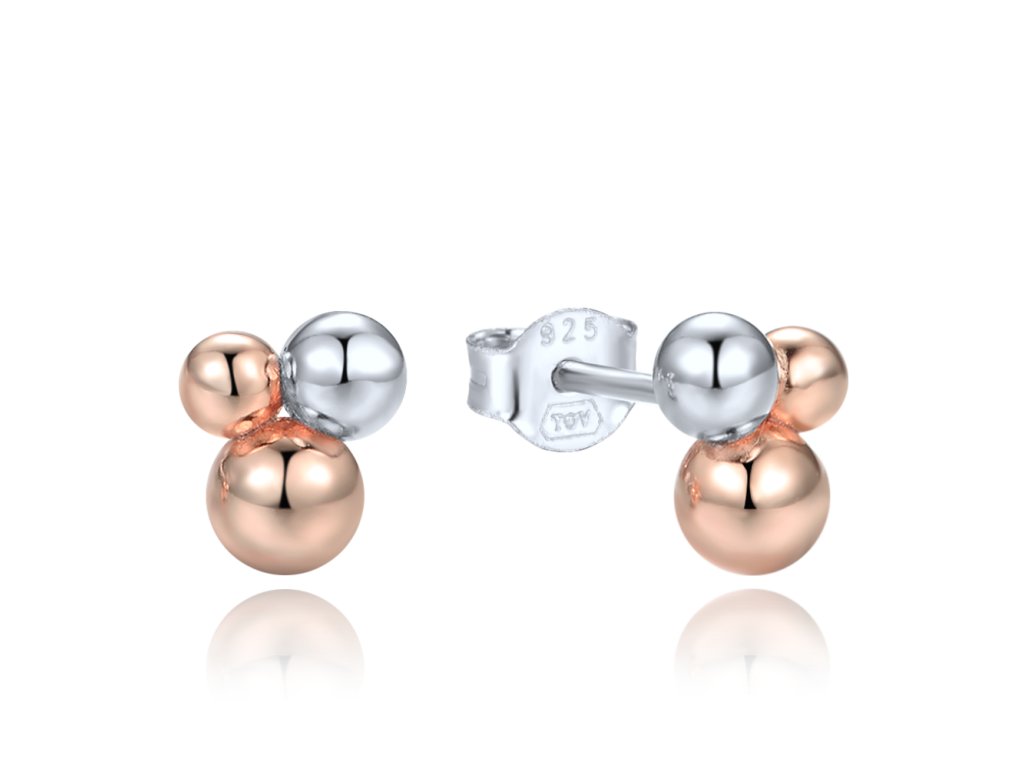 Elegantní stříbrné náušnice se stříbrnými a Rosegold kuličkami