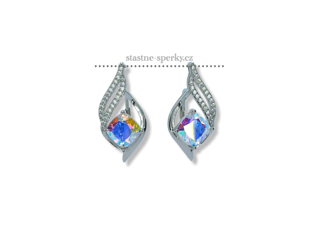 Luxusní stříbrné náušnice bílý přírodní KŘIŠŤÁL a bílé zirkony
