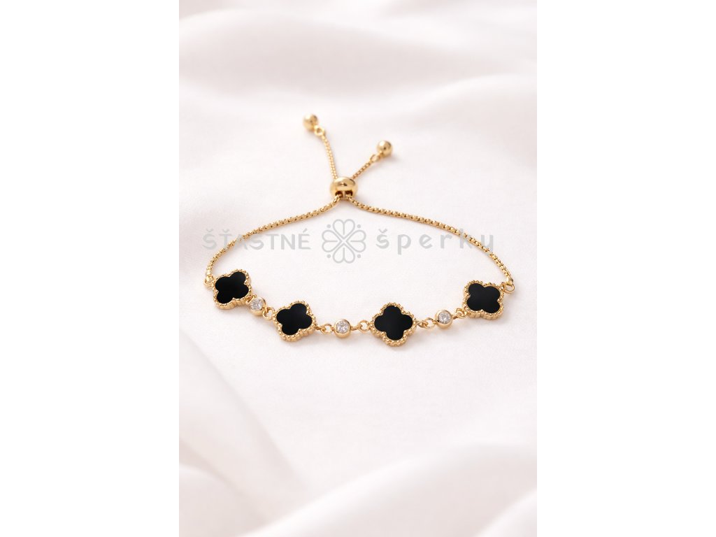 Ocelový pozlacený náramek s černými čtyřlístky