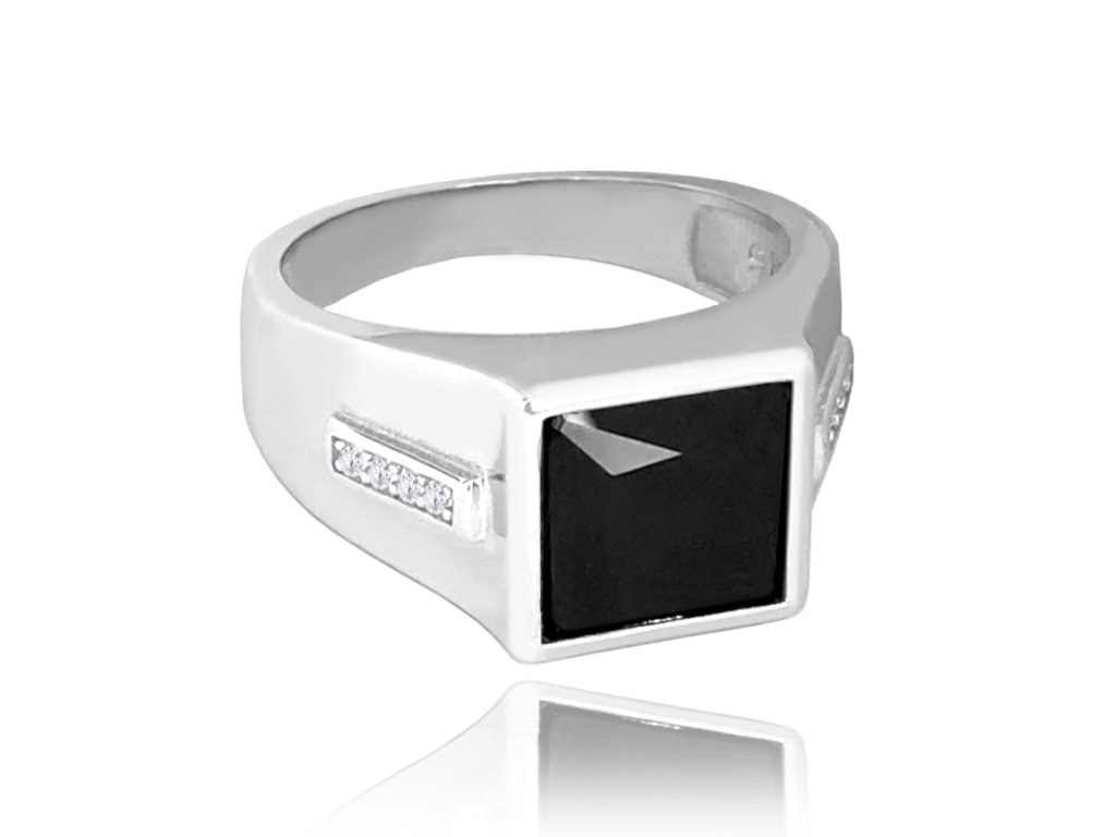 Pánský pečetní stříbrný prsten s černým zirkonem