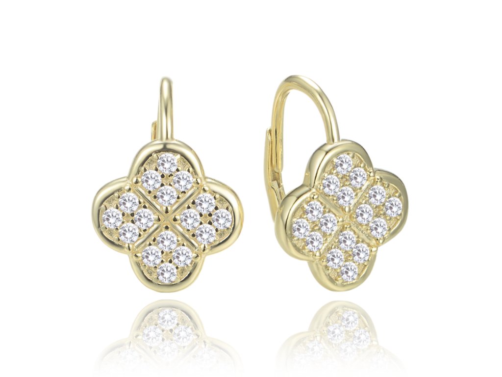 Pozlacené stříbrné náušnice čtyřlístky s bílými zirkony