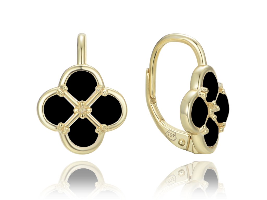 Pozlacené stříbrné náušnice čtyřlístky s černou perletí