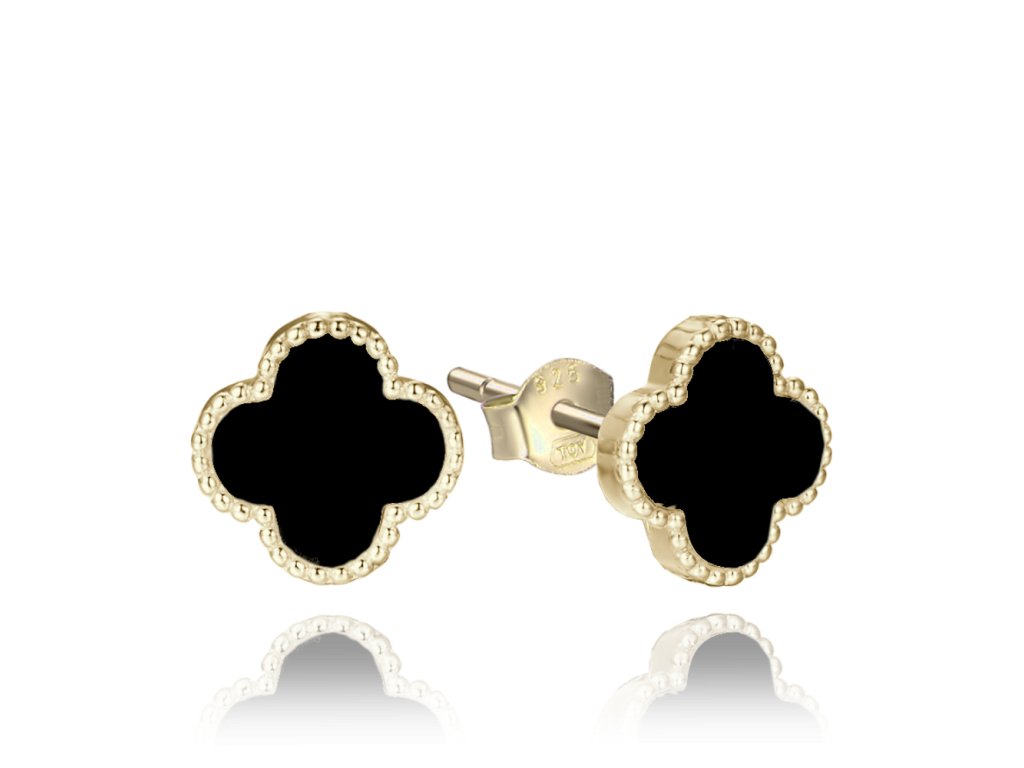 Pozlacené stříbrné náušnice čtyřlístky s onyxem