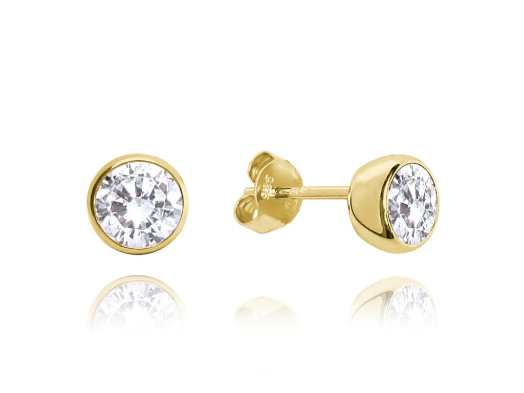 Pozlacené stříbrné náušnice PECKY s bílými zirkony