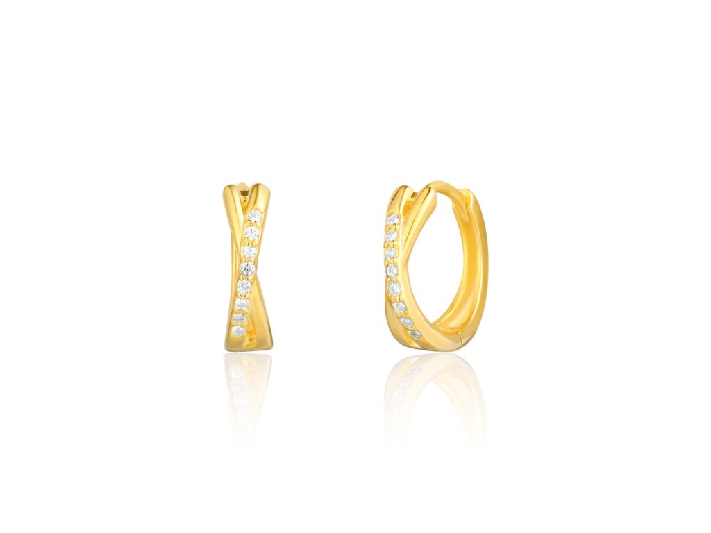 Pozlacené stříbrné náušnice překřížené se zirkony