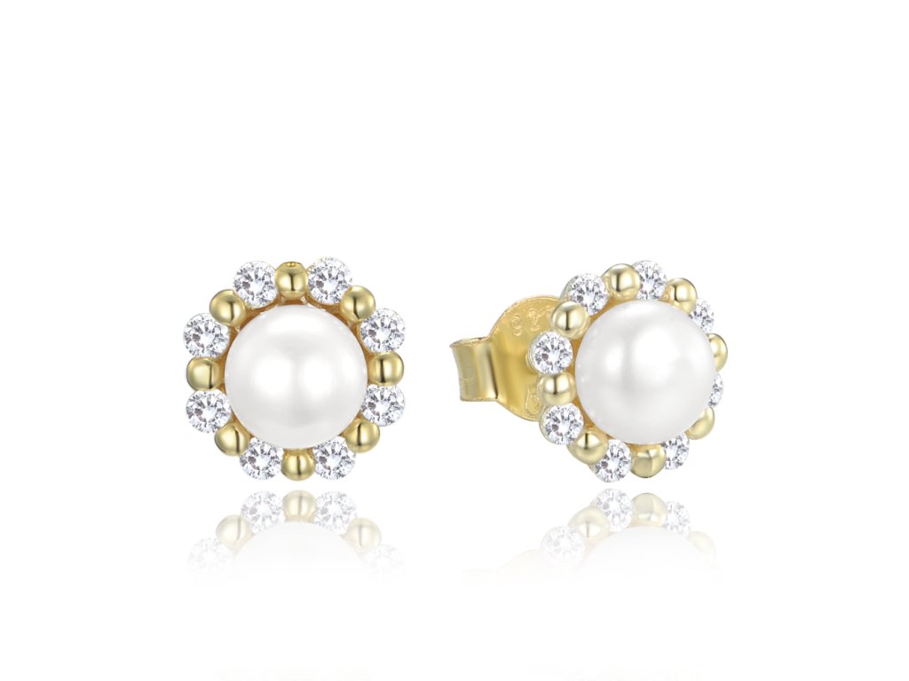 Pozlacené stříbrné náušnice s přírodními perlami a zirkony