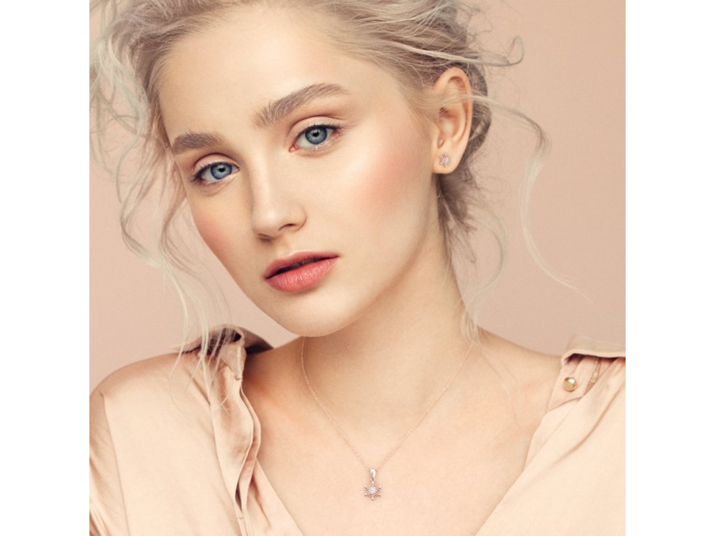 Rose gold stříbrné náušnice SNĚHOVÉ VLOČKY s bílými zirkony