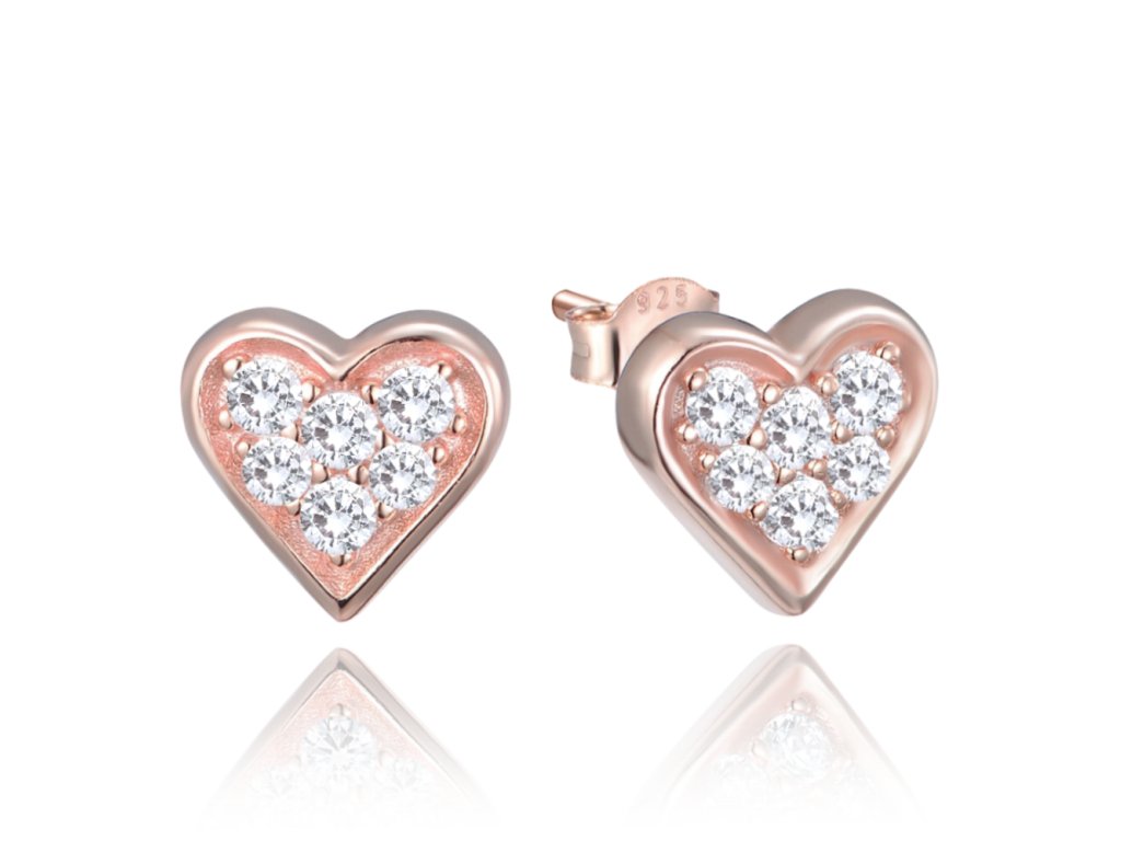 Rose gold stříbrné náušnice srdíčka se zirkony