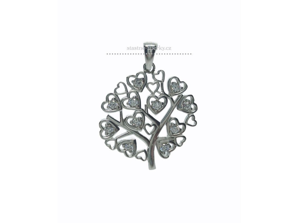 Stříbrná strom života se zirkony srdce