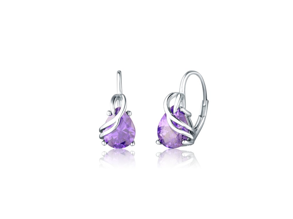 Stříbrné elegantní náušnice fialové slzy