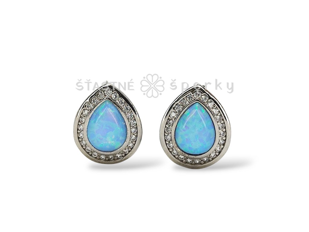 Stříbrné náušnice slzy se světle modrými opály a zirkony