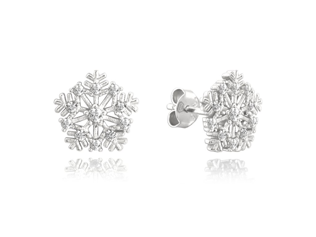 Stříbrné náušnice SNĚHOVÉ VLOČKY s bílými zirkony