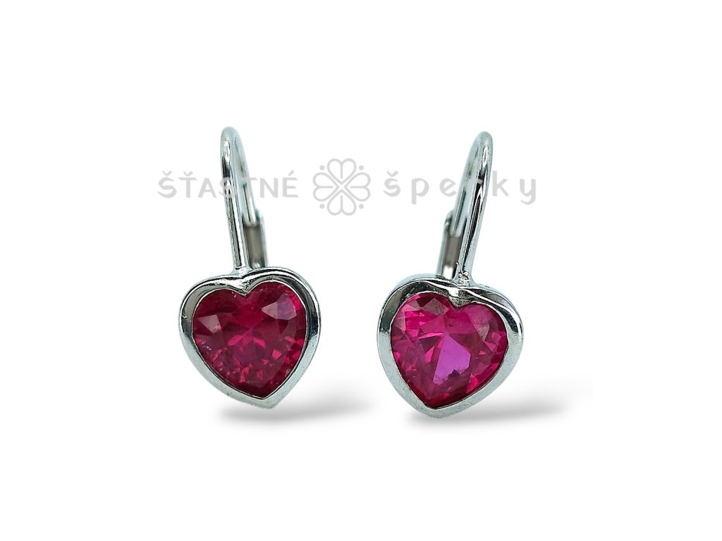 Stříbrné srdíčkové tmavě růžové