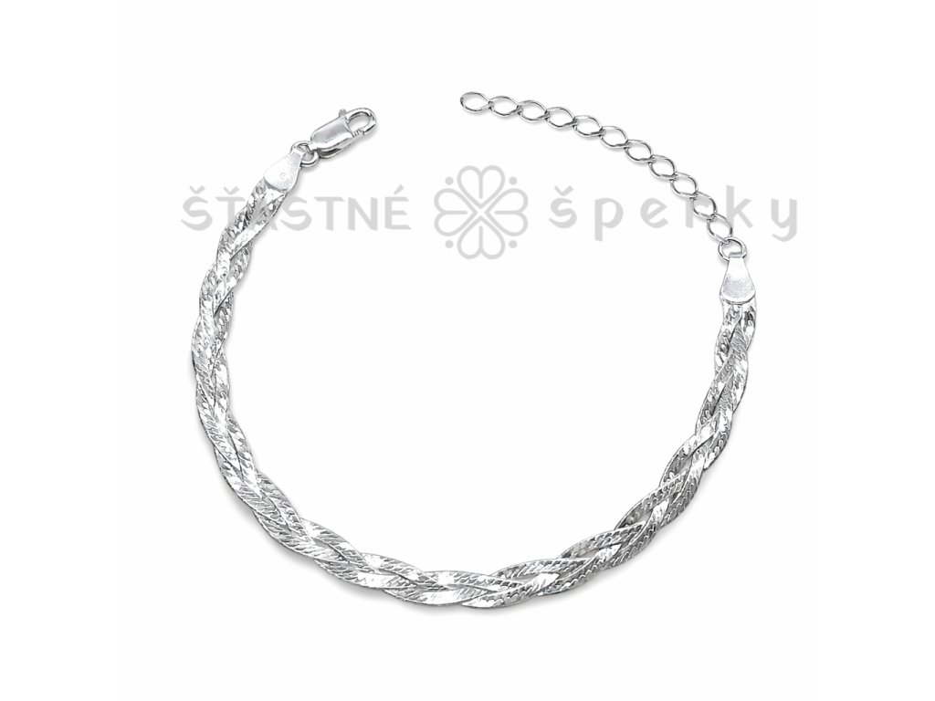 Stříbrný pletený náramek cop