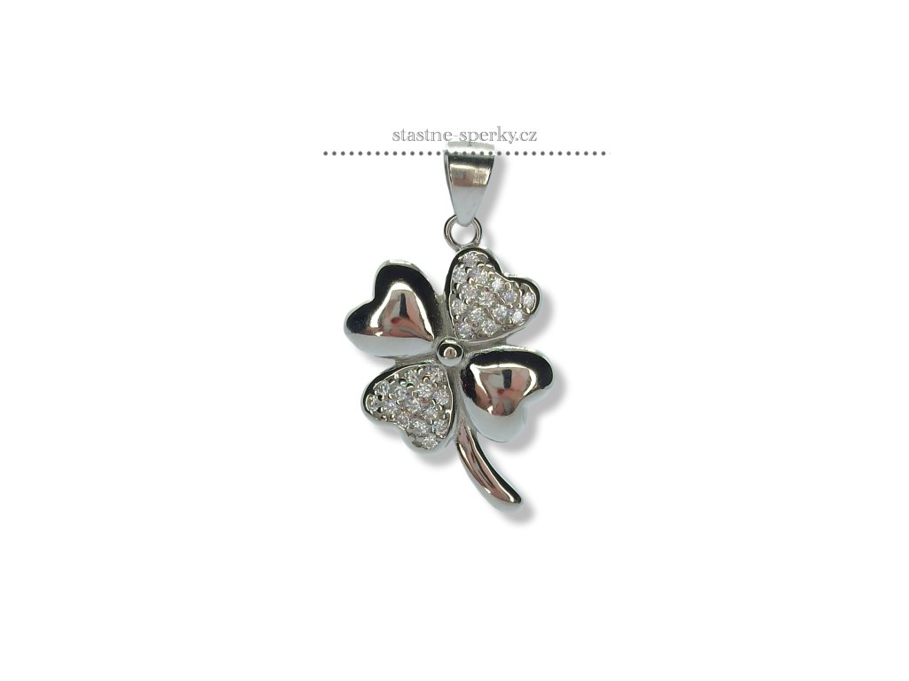 Stříbrný přívěšek čtyřlístek se zirkony