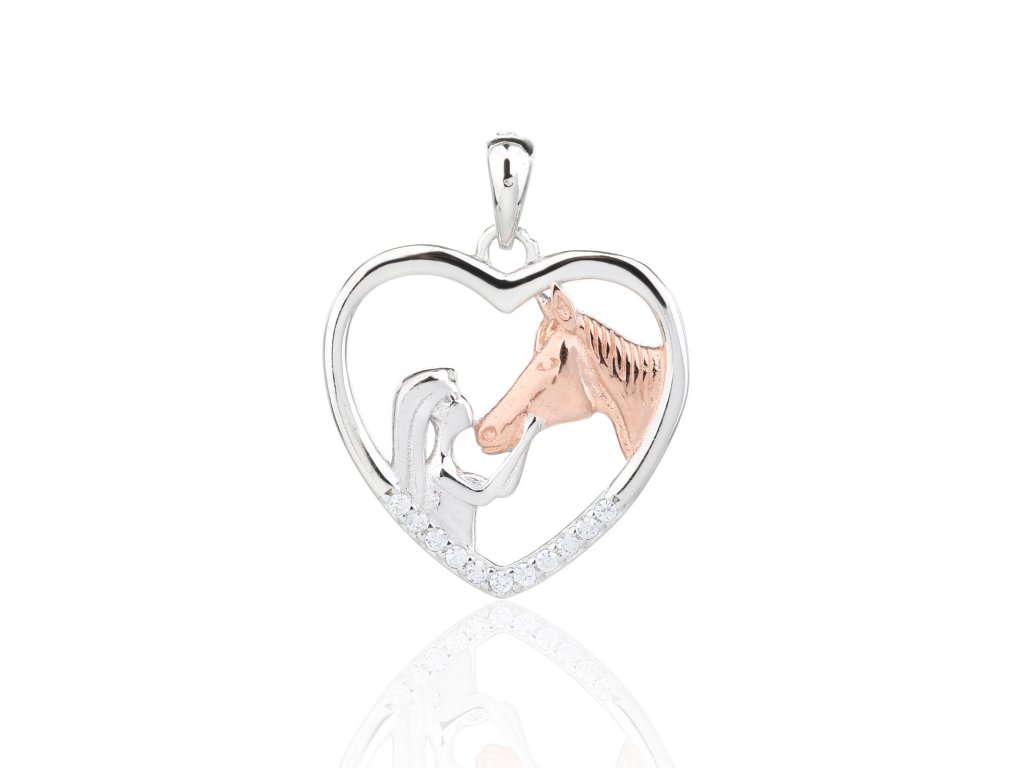Stříbrný přívěsek kůň s dívkou rose v srdíčku