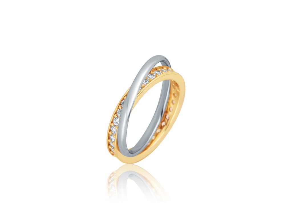 Stříbrný prsten kombinace dva kruhy spojené se zirkony