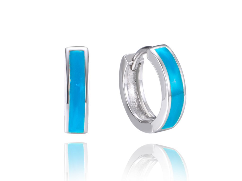 Teen svítící modré stříbrné náušnice KROUŽKY
