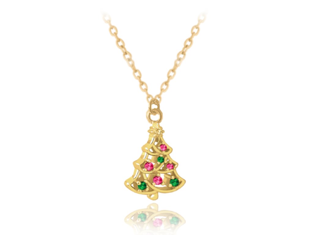 Vánoční pozlacený stříbrný náhrdelník CHRISTMAS TREE stromeček vánoční