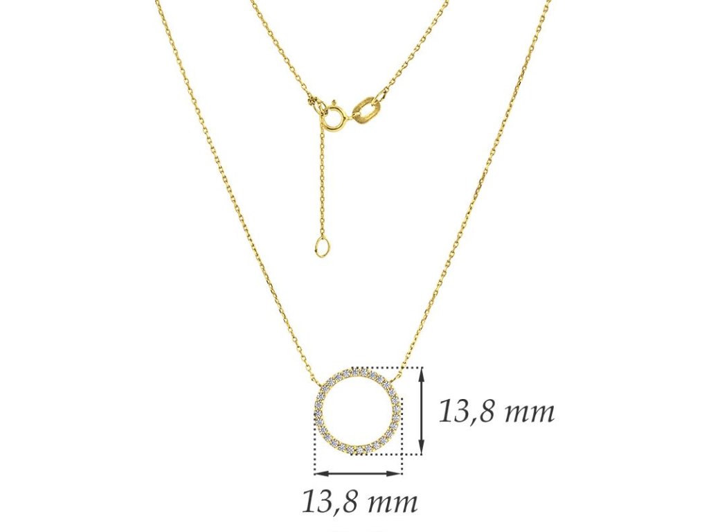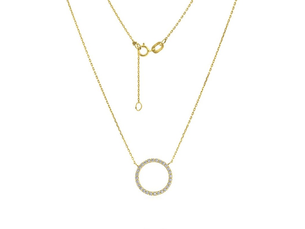 Zlatý náhrdelník kolečko, kruh se zirkony