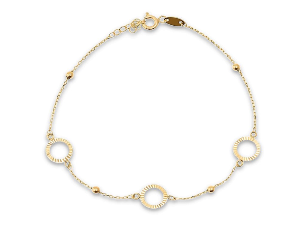 Zlatý náramek s broušenými kroužky a kuličkami